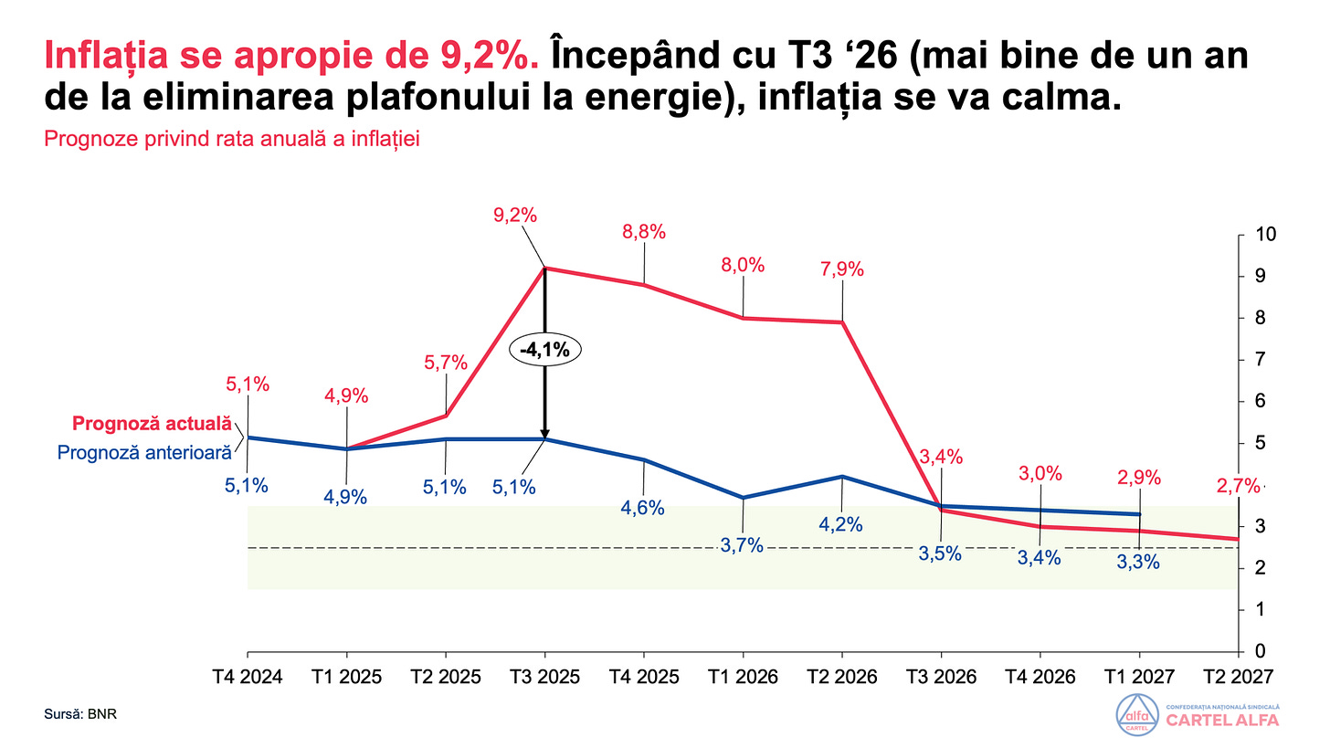 Deficitul este doar o parte a problemei. Oamenii nu se hrănesc sau se îmbracă cu deficitul. Inflația va atinge 8,8% la finalul anului 2025, în principal, din cauza eliminării plafonului facturilor la energie electrică.